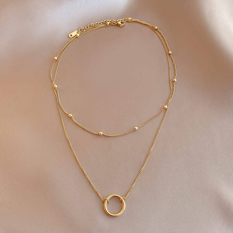 Nouveau Collier Ras-du-Cou Double Couche Simple en Acier Inoxydable Plaqué Or 18K pour Femme, Accessoires de Luxe Originaux