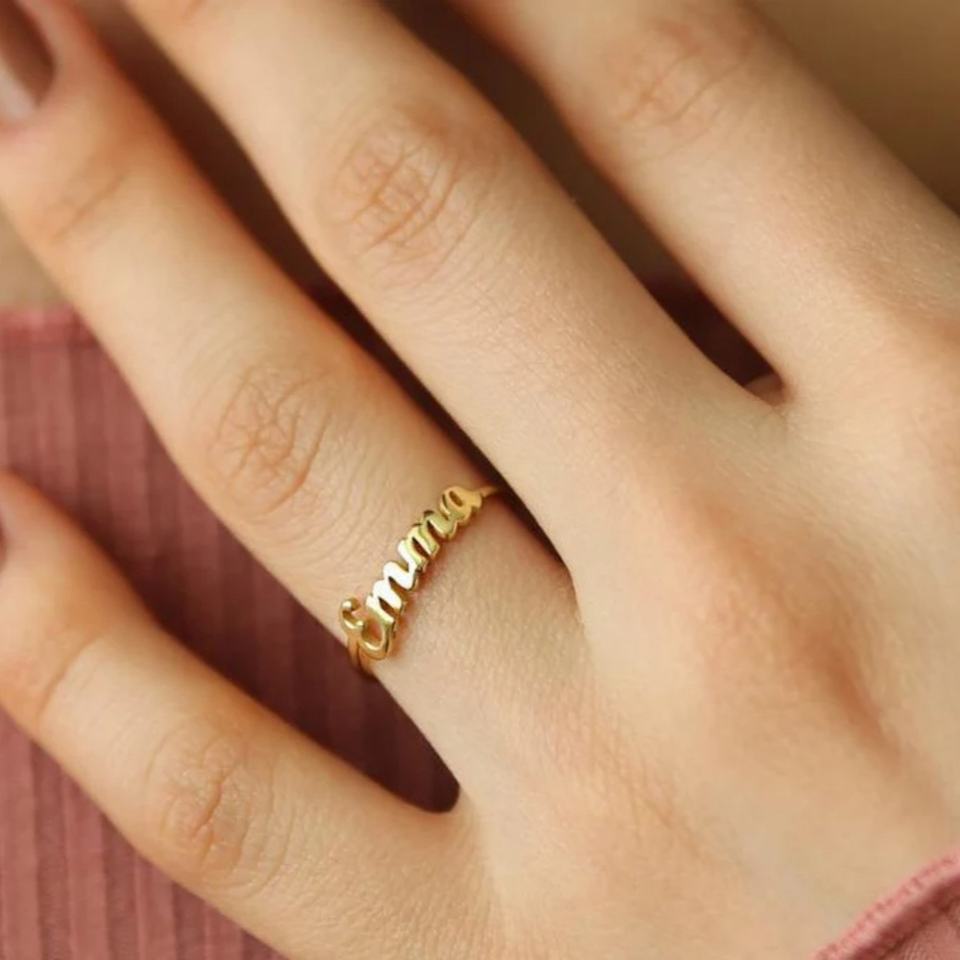 Nouvelle bague de nom personnalisée en acier inoxydable plaqué or bague de lettre personnalisée cadeau d'anniversaire de Noël pour les amoureux et les amis