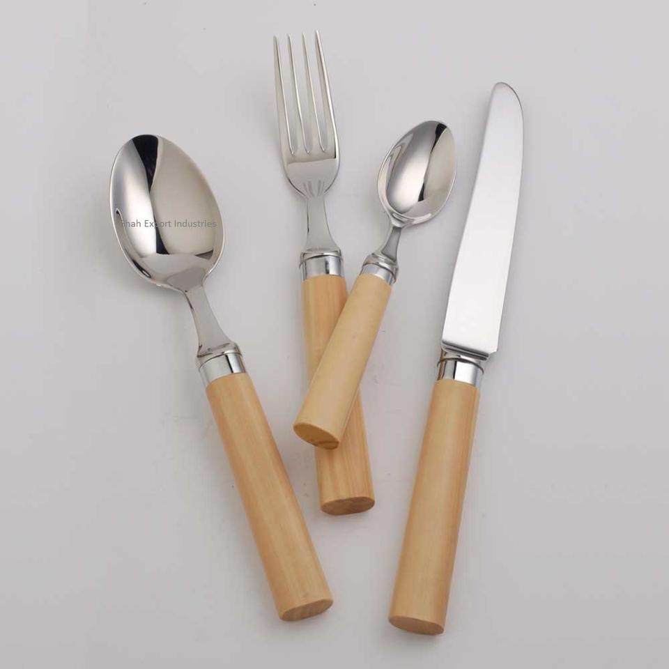 Ensemble de couverts en acier inoxydable à la mode avec manche en bois fini argent pour la maison Table à manger vaisselle ensembles de couverts