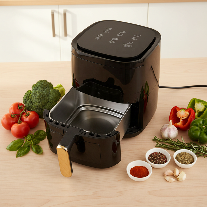 Nouvelle friteuse à air 5L avec panier intérieur en acier inoxydable, 6 programmes, contrôle numérique, appareils électroménagers intelligents de haute qualité pour la maison