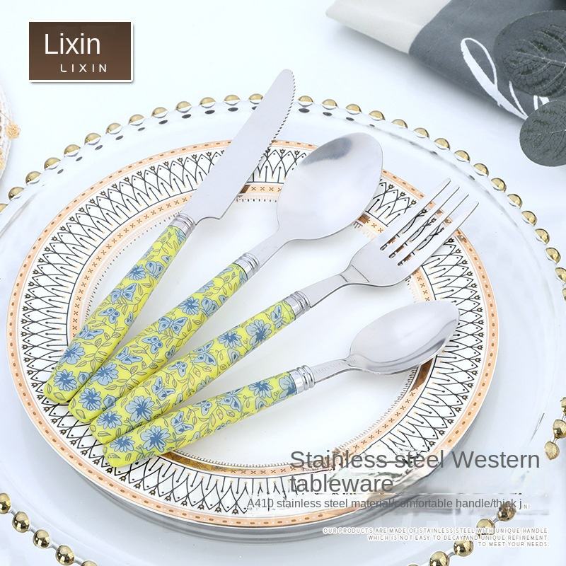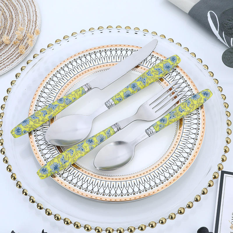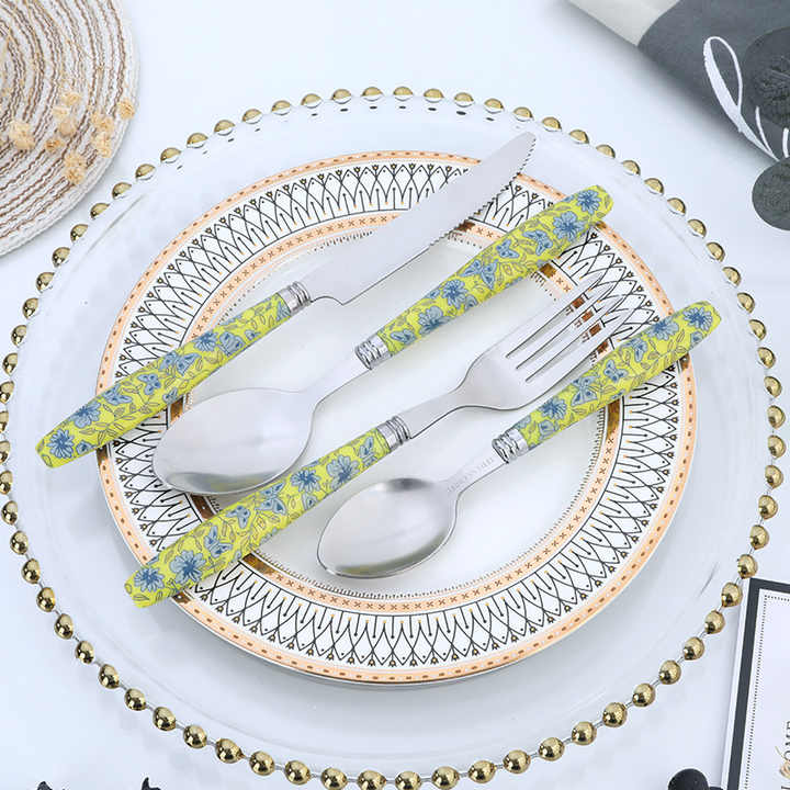 Ensemble d'ustensiles en acier inoxydable, ustensiles de table, couteaux, fourchettes, cuillères, 24 pièces, poignée en plastique, ensembles de couverts, nouveau