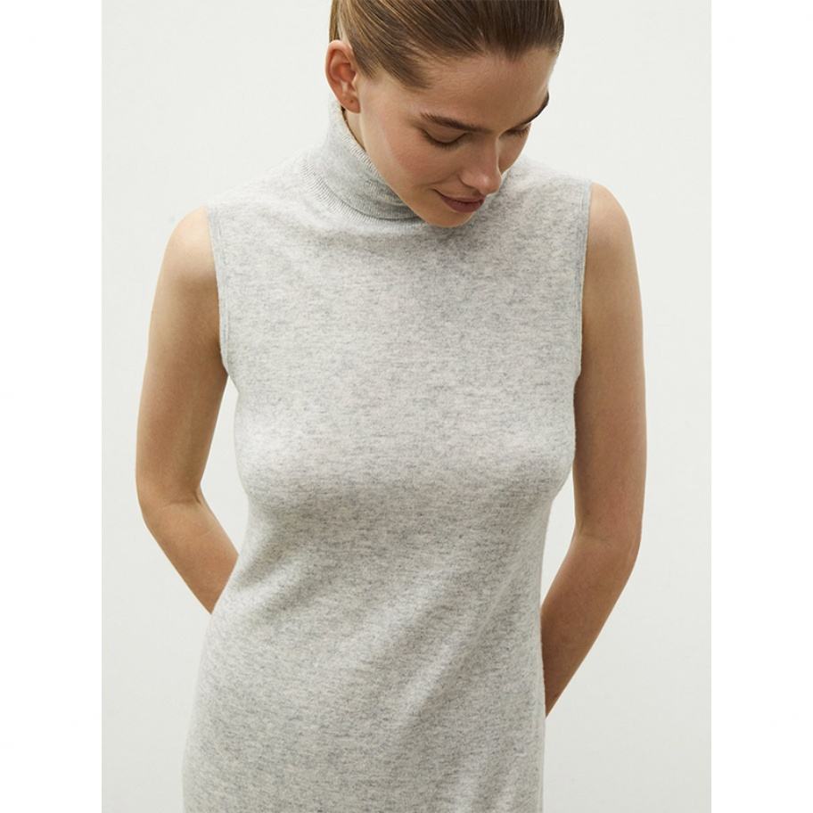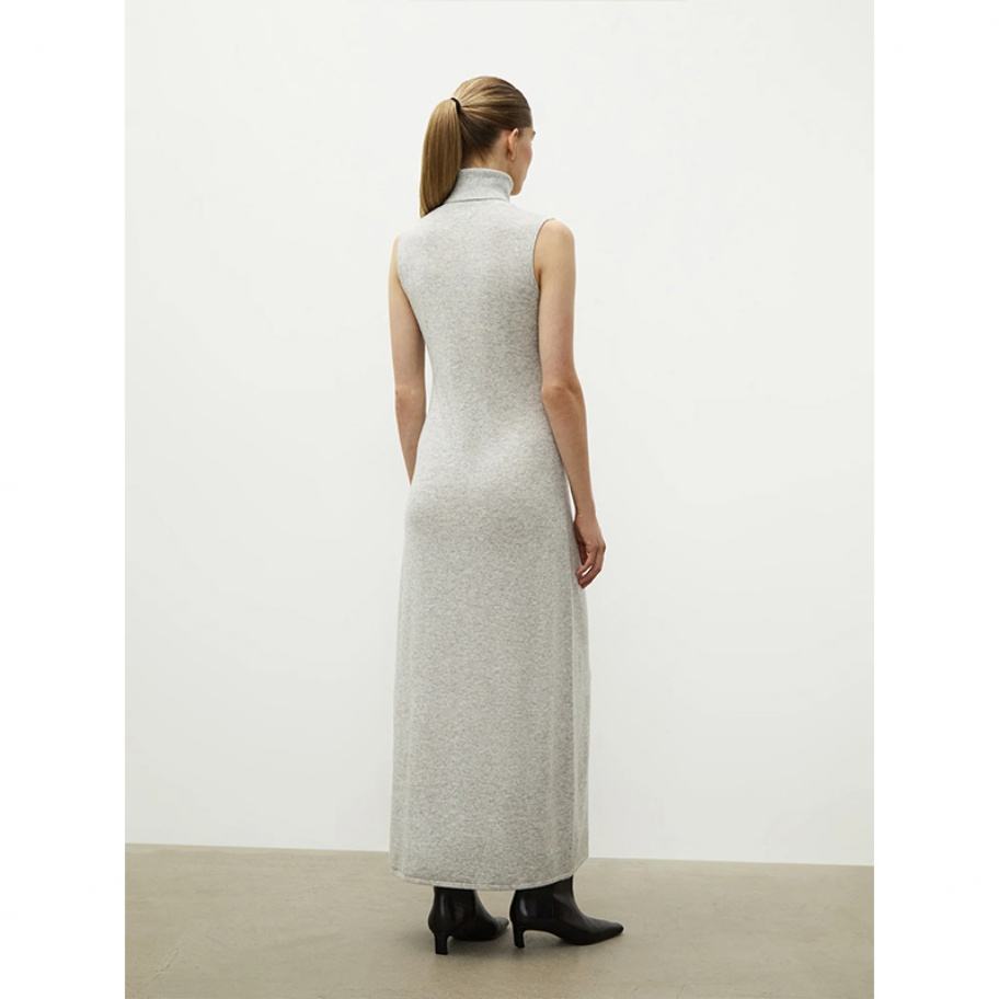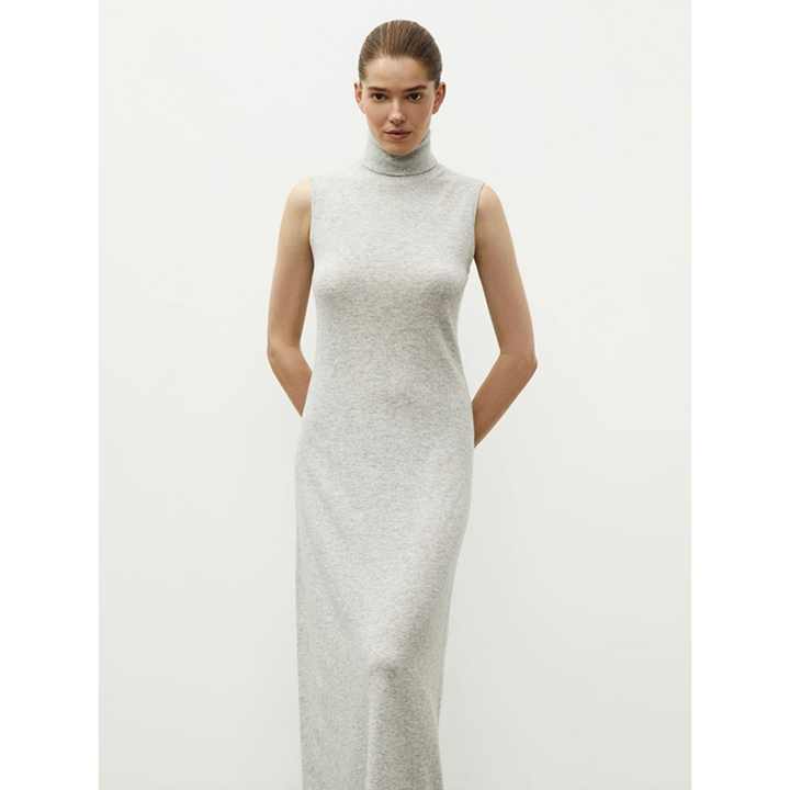 Nouvelle arrivée en stock, robe en cachemire et laine à col haut, sans manches, robe longue