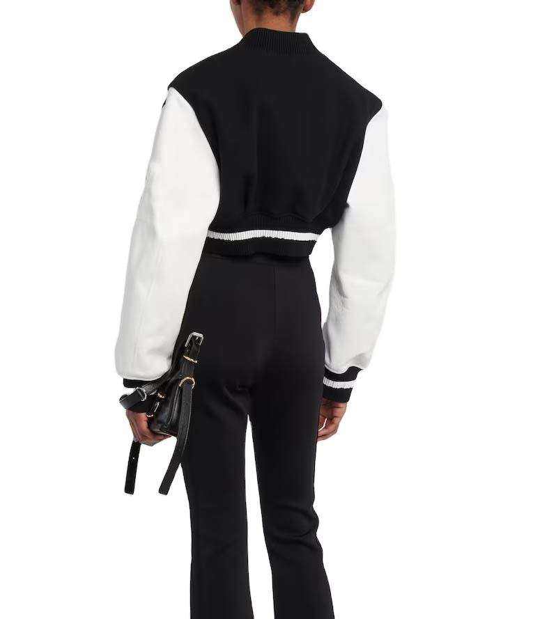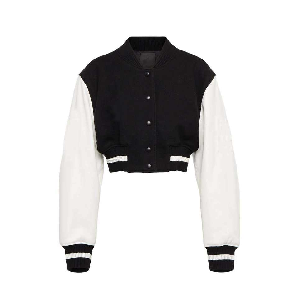 Veste varsity courte style streetwear, personnalisable avec logo, taille ajustable, en laine, pour femmes