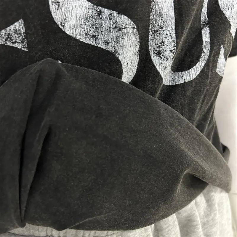 Nouveau Streetwear épaule tombée surdimensionné t-shirt hommes lavage à l'acide Vintage en détresse Boxy Double couche à manches longues cou t-shirt