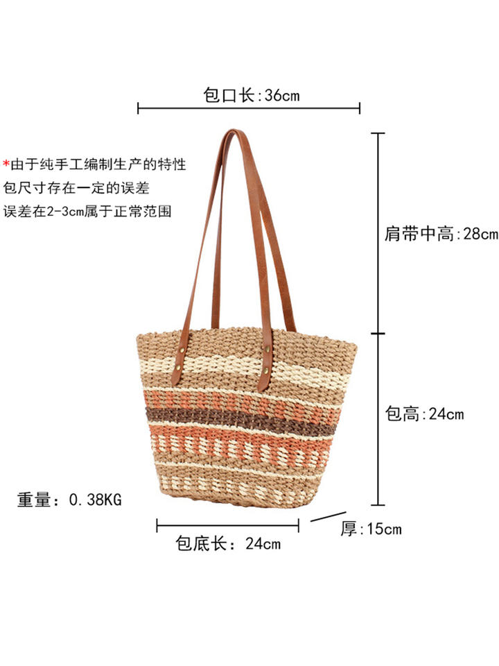 Nouveau sac à bandoulière tissé rayé à deux fermetures éclair et rivets, idéal pour les vacances à la plage, les loisirs quotidiens, la mode polyvalente, sac pour femme Tanjing