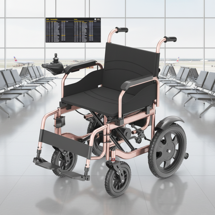 Nouveau style, fauteuil roulant automatique en acier au carbone pliable facilement, capacité de charge de 130 kg, batterie au plomb-acide puissante, moteurs sans balais 250 W*2