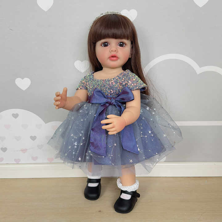 Nouvelle poupée réaliste en silicone de 22 pouces, corps entier, style Reborn, Betty, cheveux longs, pour cadeaux pour enfants