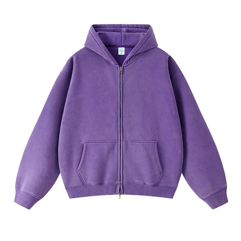 Sweats à capuche zippés New Style Acid Wash pour hommes avec sérigraphie et finition vintage Stone Washed