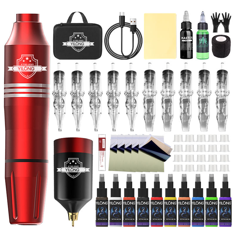 Yilong/OEM Kit de tatouage sans fil ls-rocket-kit complet – stylo rotatif pro, aiguilles à cartouche pour body art, logo gratuit