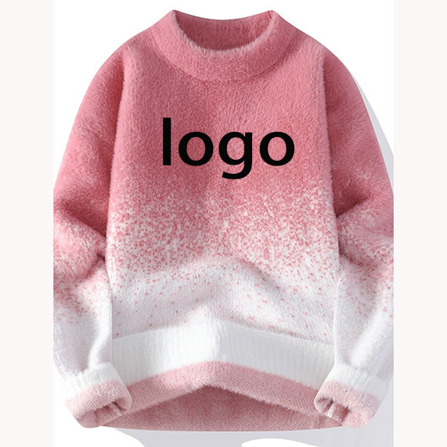 Pull pour homme, style automne-hiver, dégradé ombré, col rond, tendance, marque, adolescent, doublure en polaire, tricot, style décontracté et polyvalent