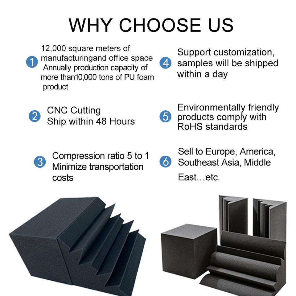 Expérience audio de qualité supérieure Panneaux acoustiques en mousse de polyuréthane couleur personnalisée Densité 8-60D pour un contrôle amélioré du bruit des pièges à basses