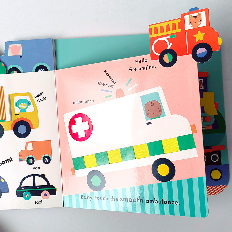 Nouveau style de livre cartonné imprimé pour bébés de 0 à 3 ans, livre d'images en anglais sur les véhicules, livre tactile pour enfants