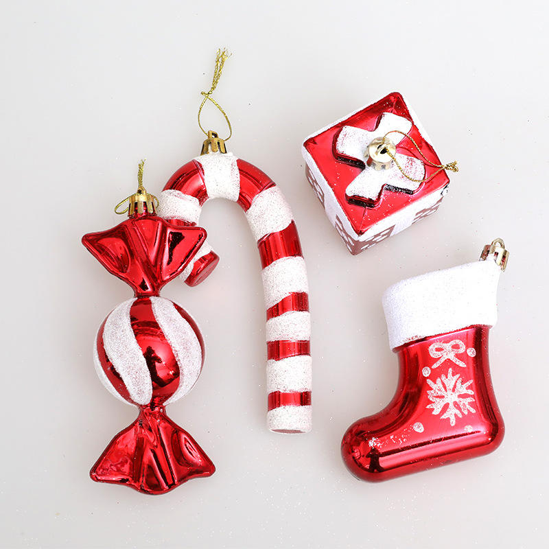 Nouvelle boîte cadeau en forme de botte de cannes en sucre pour Noël, ensemble de quatre pièces, décorations suspendues pour l'arbre de Noël