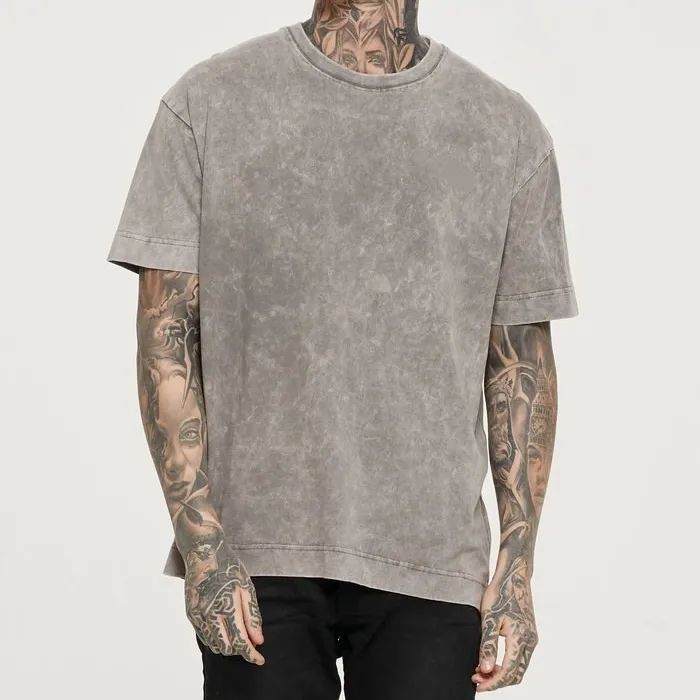 T-shirt personnalisé de style nouveau, lavage à l'acide, 100% coton/polyester, manches courtes, écologique, service OEM/ODM