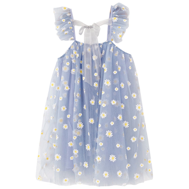 Nouvelle robe en mousseline de soie à imprimé floral avec volants et bretelles, style mignon pour bébé fille princesse