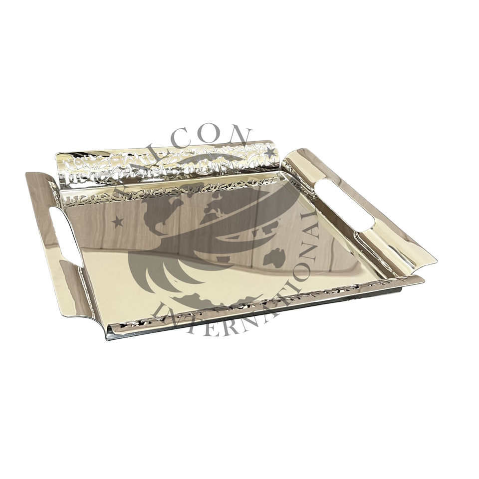 Nouveau style plat et assiette plateau de nourriture rectangulaire en acier inoxydable avec motif de fleurs