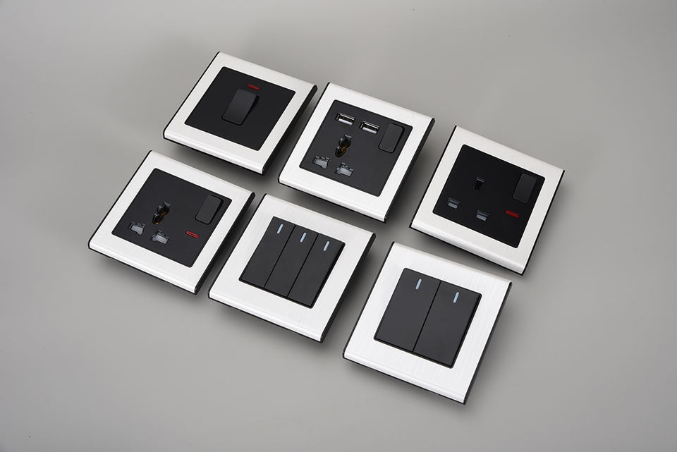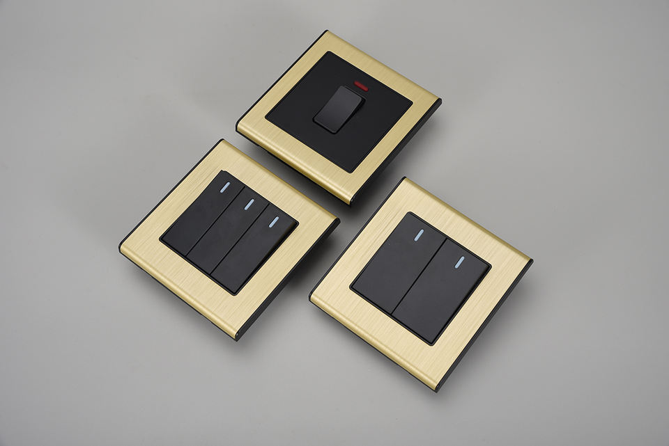 Interrupteur mural et prise de courant de style moderne, design de créateur, peinture au pistolet or nickel brossé/accessoires électriques PC
