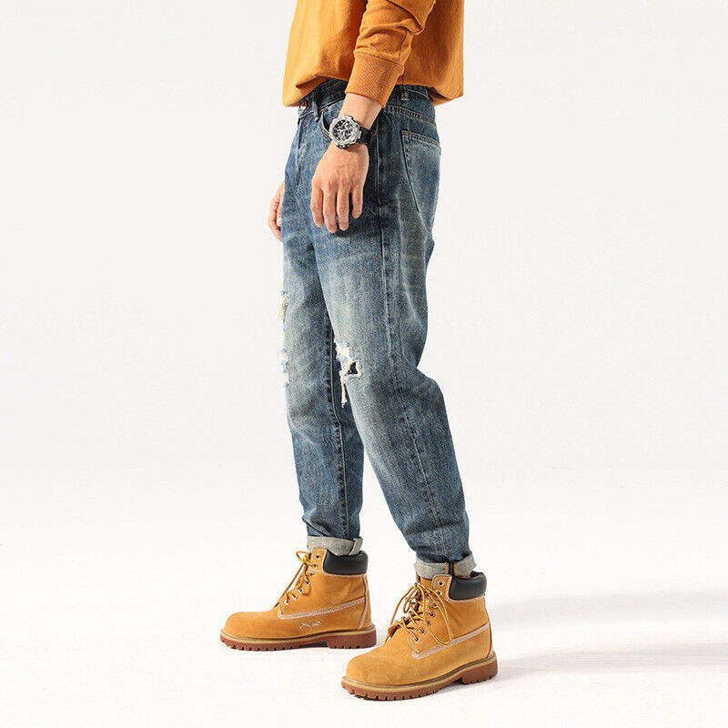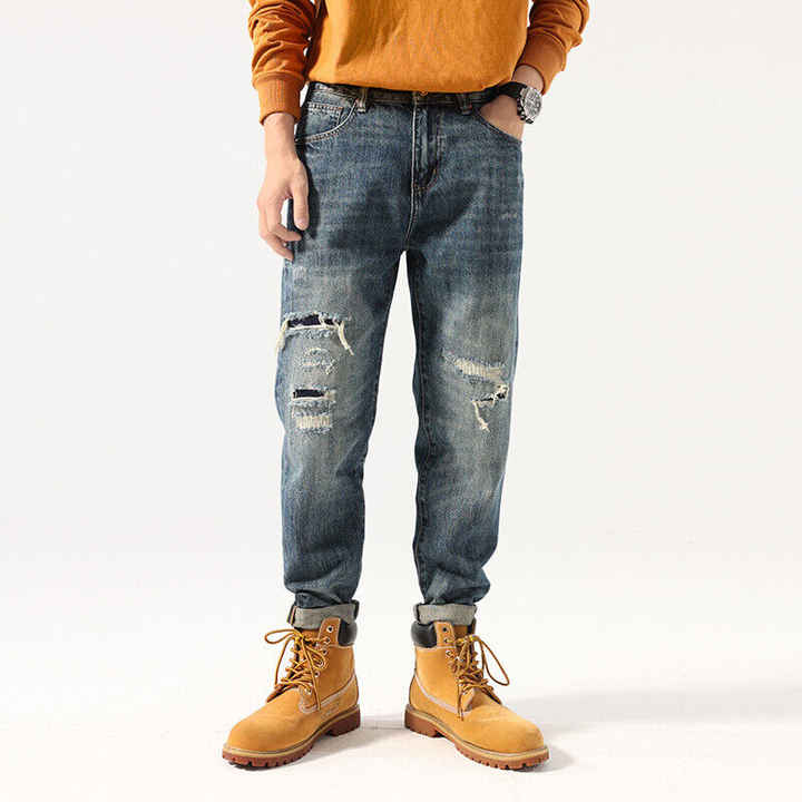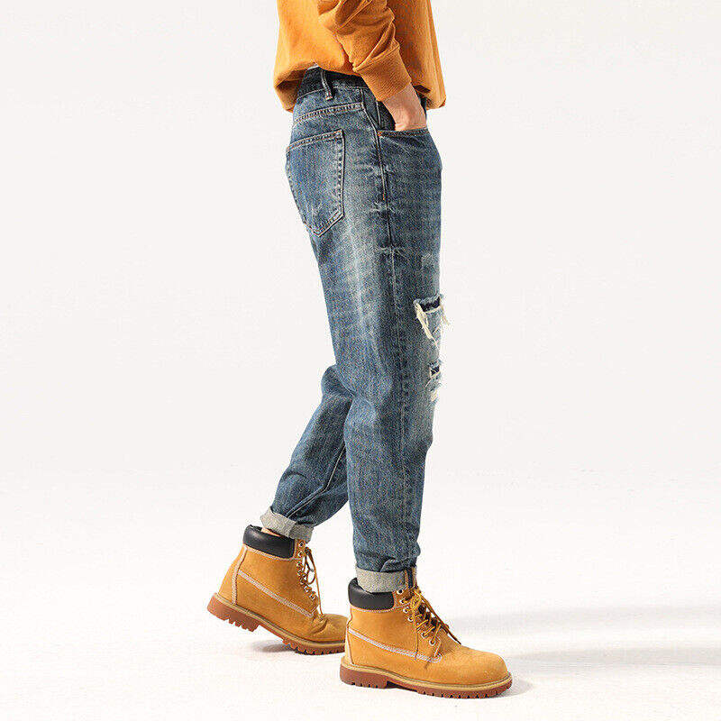 Nouveau style de jeans déchirés de rue à la mode pour hommes coupe droite pantalon sarouel ample en détresse