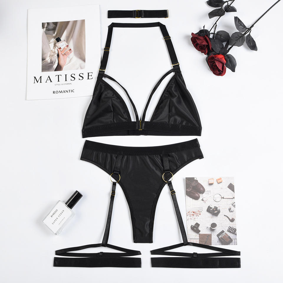 Ensemble de lingerie sexy à col halter, couleur unie, push-up, nouveau style, ensemble de sous-vêtements pour femmes en 3 pièces