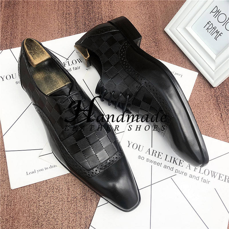Nouvelles Chaussures en Cuir Rayées Artisanales – Chaussures Montantes Tendance pour Hommes à Bout Pointu, Respirantes, Décontractées, à Lacets, Légères