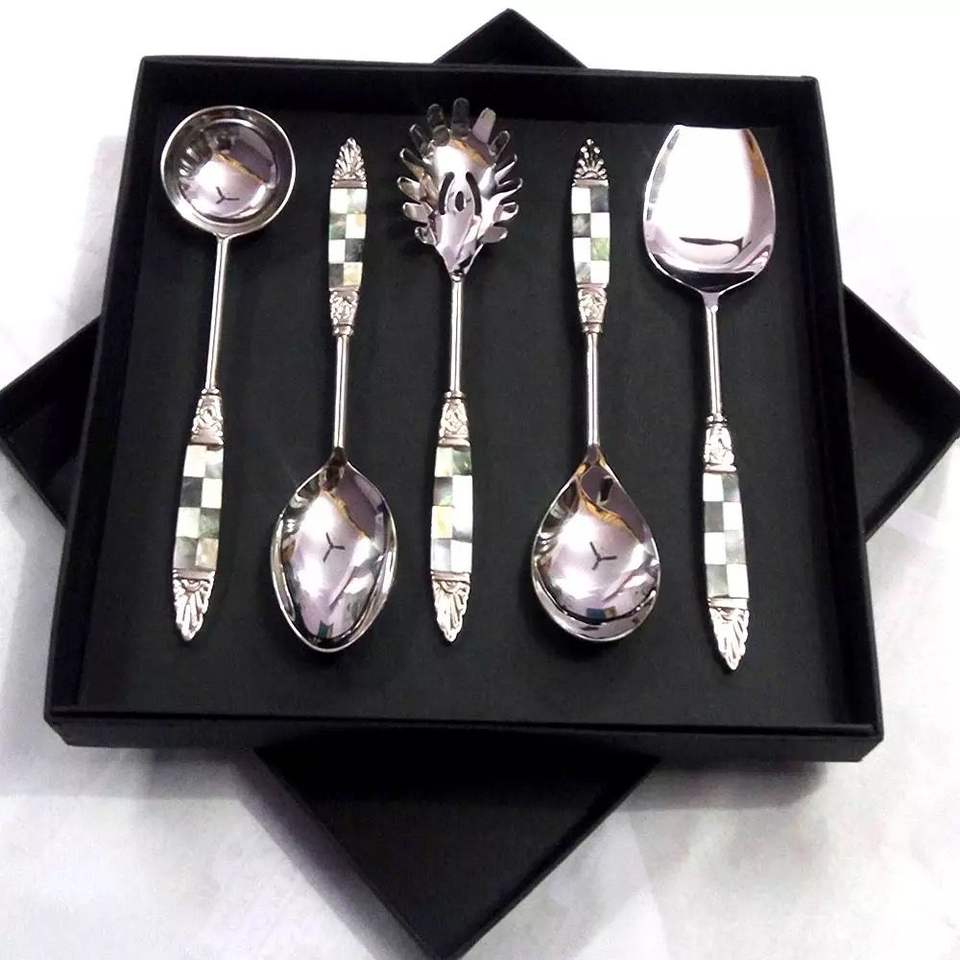 Nouveau Style fait à la main en acier inoxydable cuillère 6 pièces ensemble maison ustensiles de cuisine pour les mariages fêtes d'anniversaire couverts en métal ensemble de cuillères