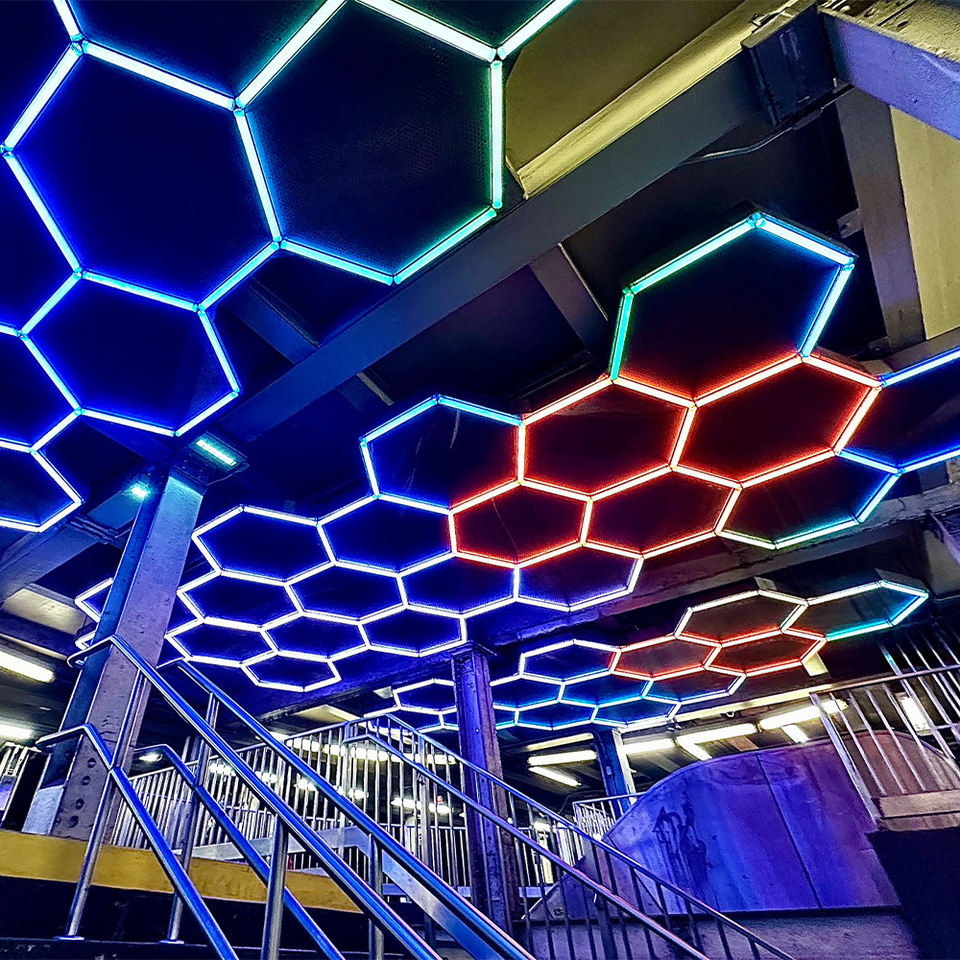 Nouveau Style hexagone éclairage atmosphère rgb grille hexagonale lumières en nid d'abeille pour gymnase stade café hexagone rgb lumières
