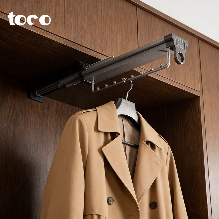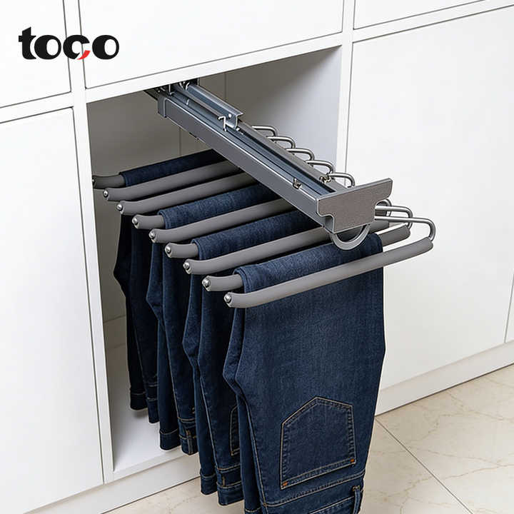 Nouveau style, porte-pantalon latéral en métal de haute qualité, fermeture douce, rangement coulissant simple rangée pour armoire, accessoire de penderie