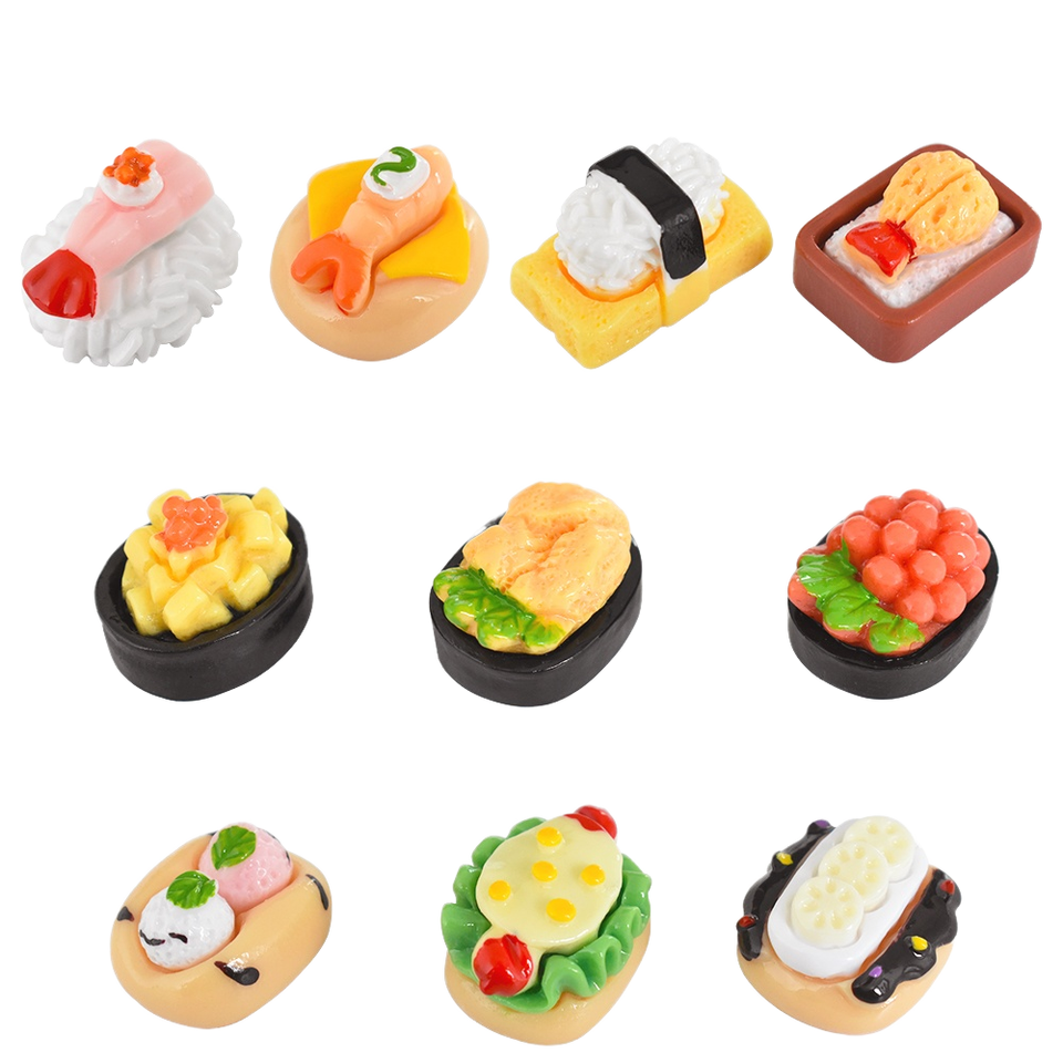 Nouveau style japonais : miniatures de nourriture simulée, sushis en résine, cabochons à dos plat pour la fabrication artisanale de boucles d'oreilles et bracelets DIY