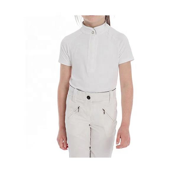 Nouveau Style Enfants Équestre Équitation Sous-Vêtement à manches courtes Équitation tops avec Bouton col enfants équitation shirts avec personnalisé