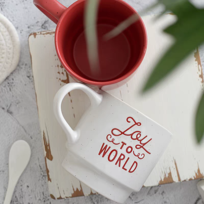 Nouveau style, prix réduit, tasses en céramique classiques rétro rouge et blanc, couleur unie, avec lettres, compatibles lave-vaisselle et micro-ondes, en grès alimentaire
