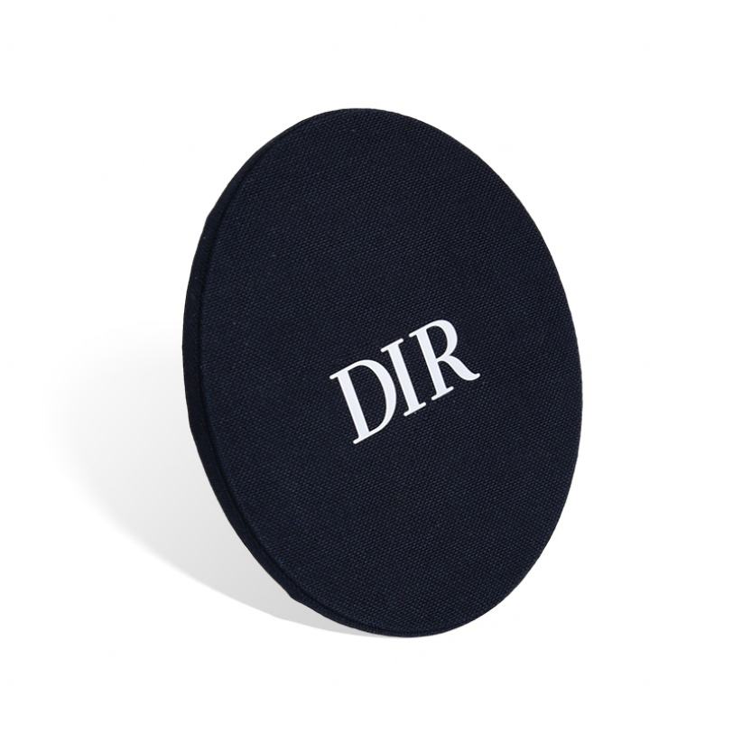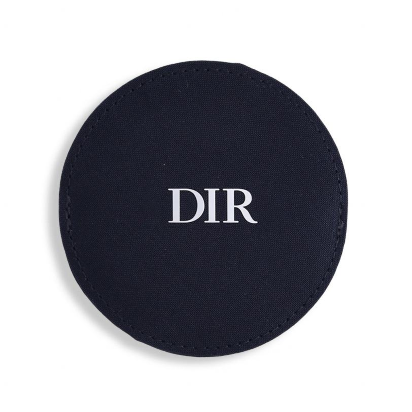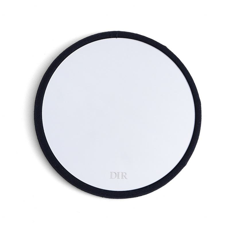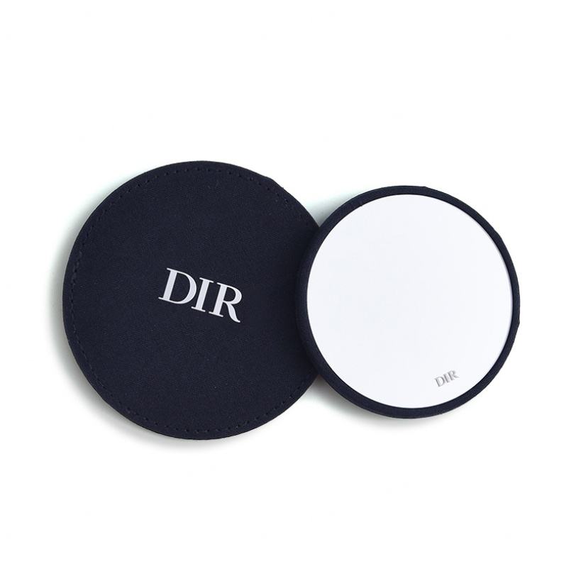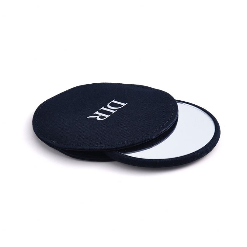 Nouveau style mini miroir de maquillage rond noir en tissu gravé au laser avec emballage cadeau