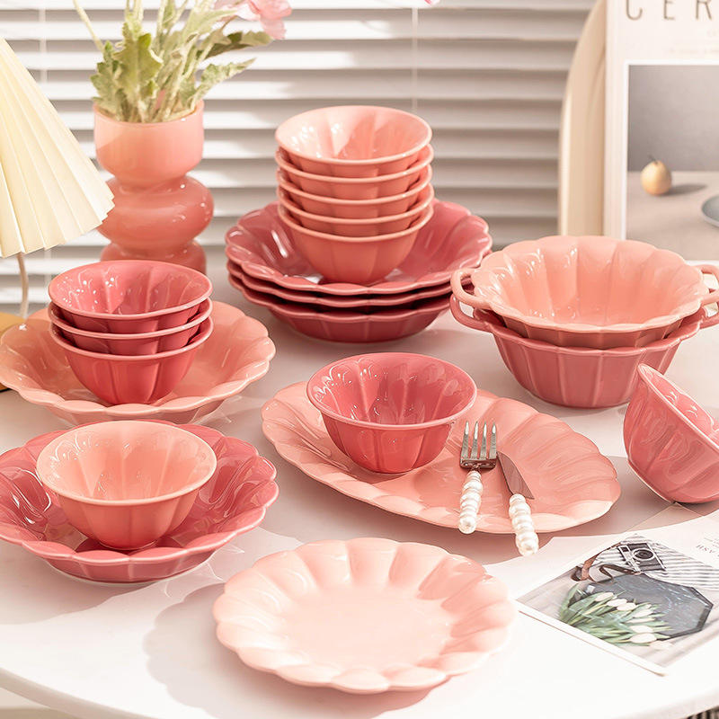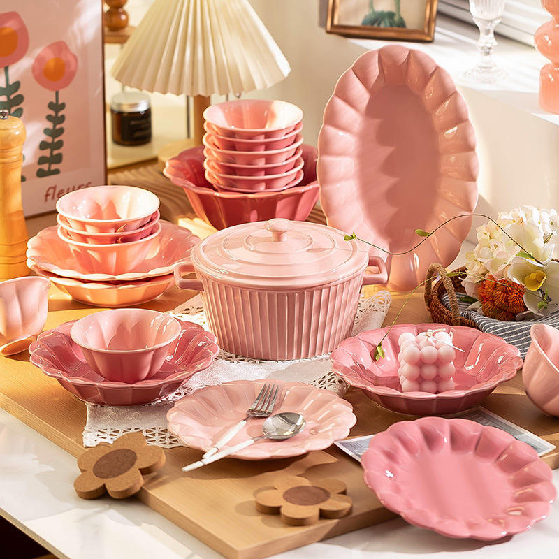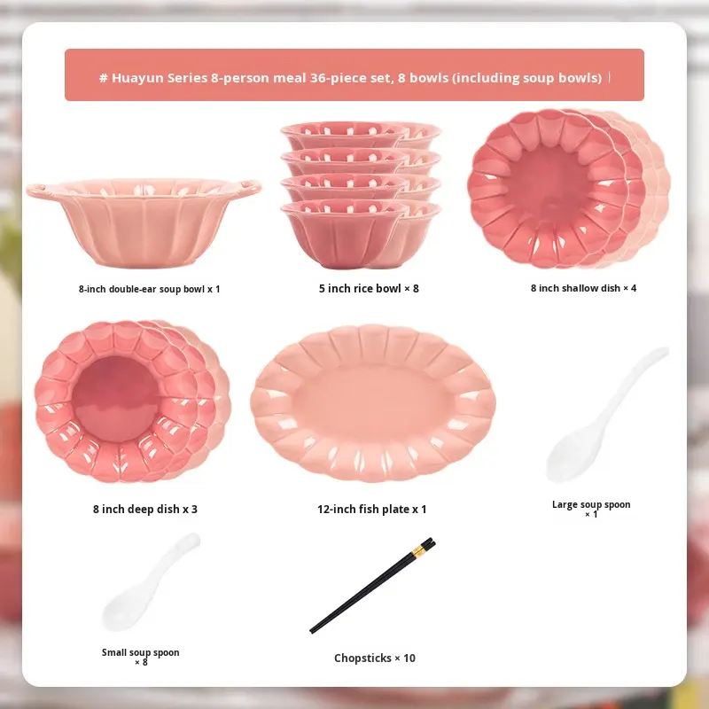 New Style Modern Minimalist Floral Dinnerware Set Ceramic Bowls Plates Chopsticks Home Use Service Housewarming High-endy