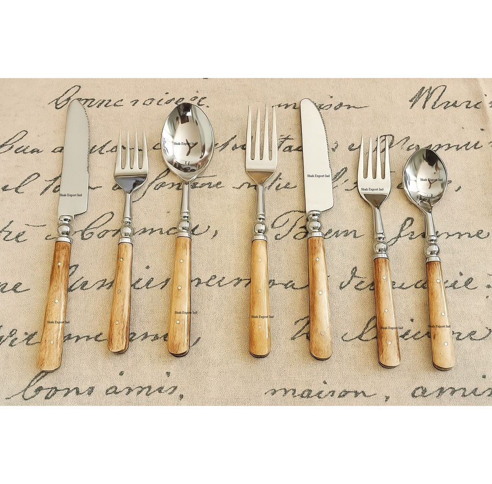 Ensemble de couverts en acier inoxydable à poignée en os naturel pour la décoration de la vaisselle de mariage et la location de couverts de mariage