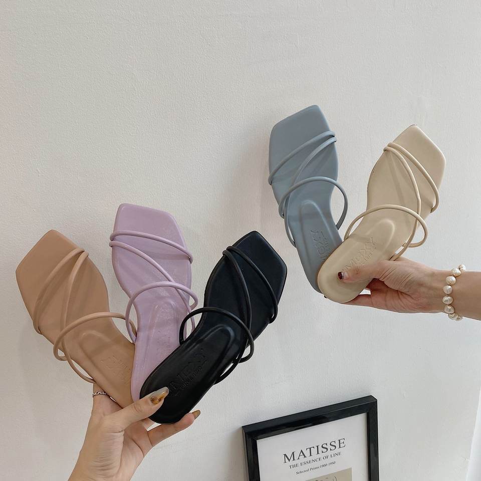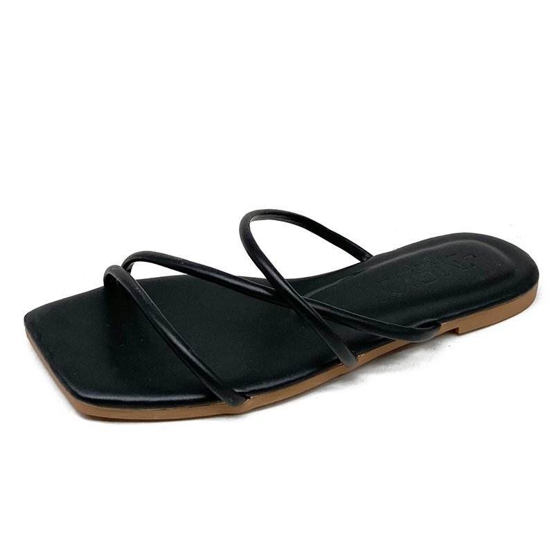 Sandales à un seul mot, nouveau style, mode féminine d'été, version coréenne, dessus en PU artificiel, semelle extérieure en caoutchouc, plates