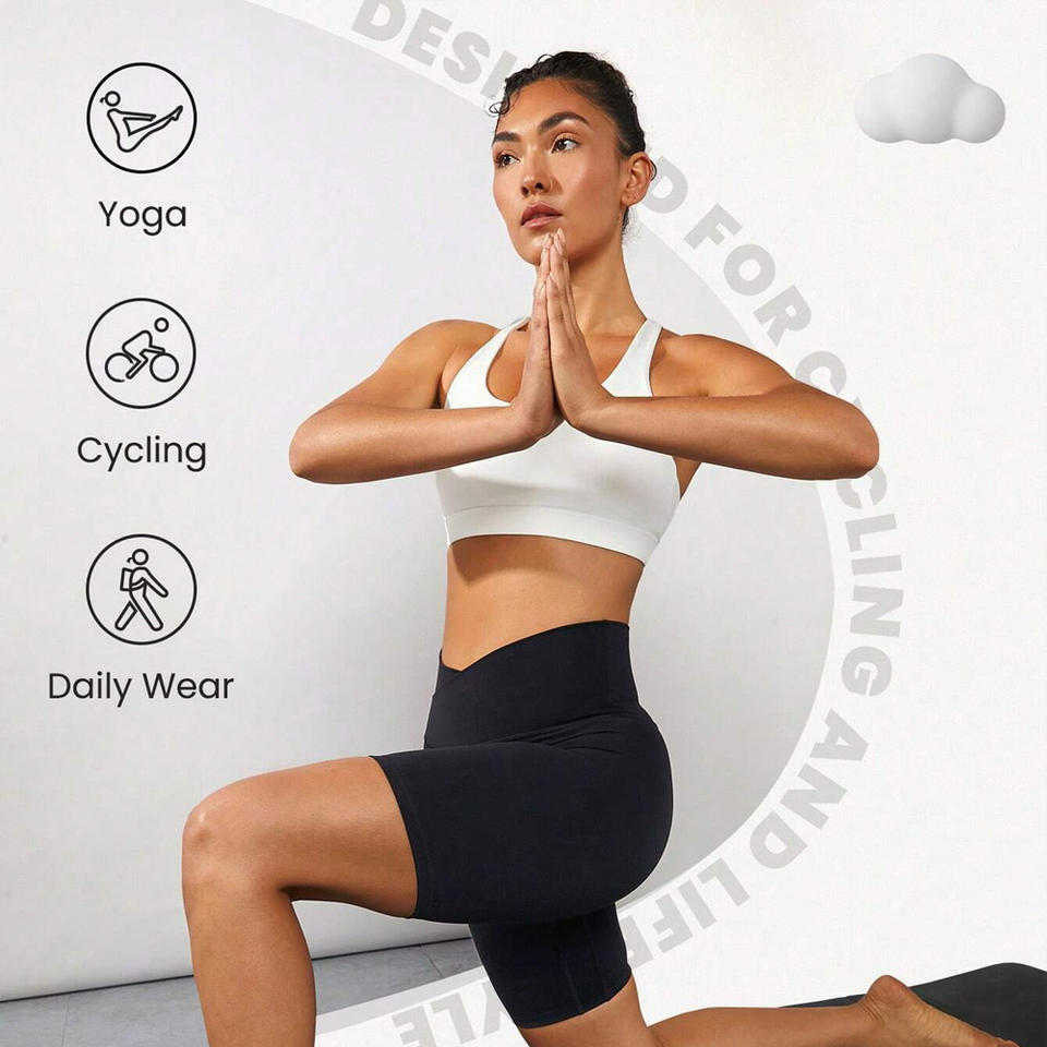 Shorts de cycliste ajustés pour femmes, taille mi-haute, en polyester/spandex, style nouveau, personnalisables, écologiques, respirants, fermeture à cordon, flexibles