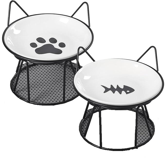 Bol pour chat en céramique surélevé moderne, imperméable et portable, avec design incliné pour l'alimentation en nourriture et en eau des chats d'intérieur