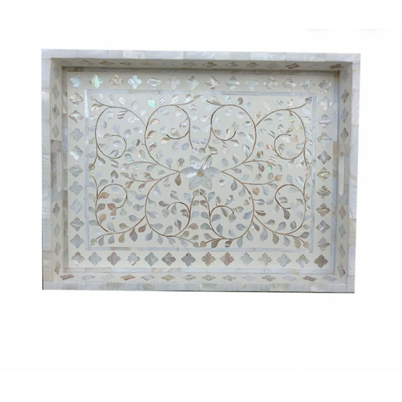Plateau de service alimentaire en bois perlé de forme rectangulaire, nouveau style, avec poignées, plateau de service alimentaire multifonctionnel pour la cuisine