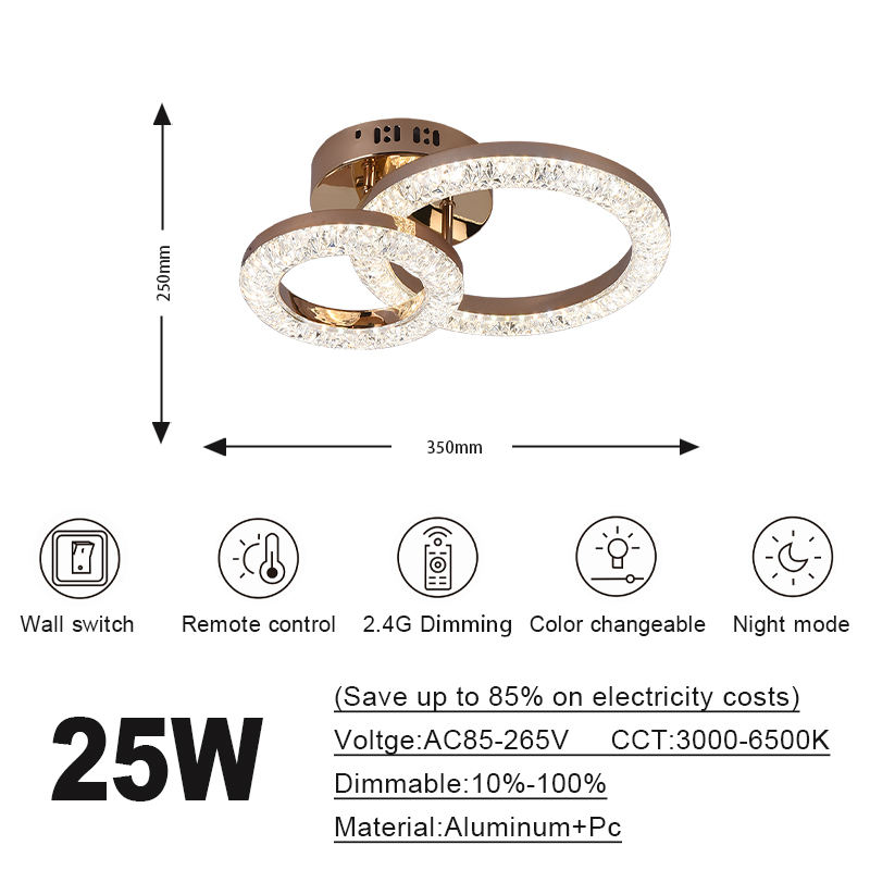 Style moderne Télécommande LED Lustre Cercle Anneaux Acrylique Plafonnier Salon Chambre Base En Aluminium Source D'alimentation CA