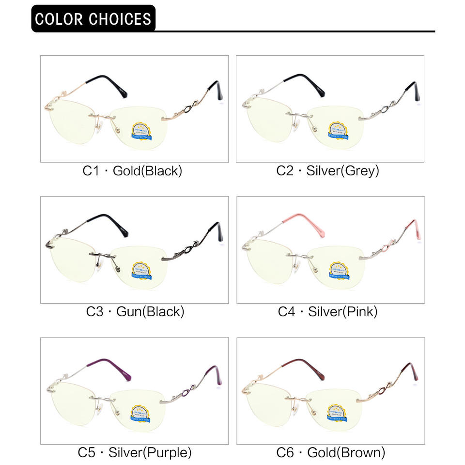 Lunettes Anti-lumière bleue sans monture pour femmes, nouveau Style, monture ovale 50002, lunettes de protection avec embellissements en strass