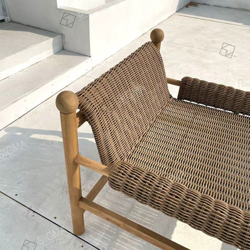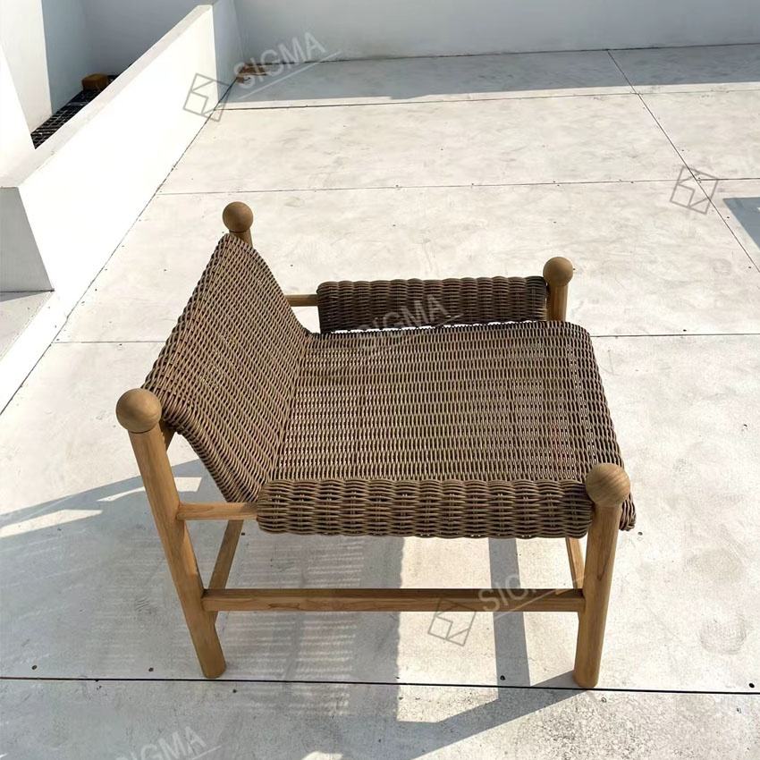 Chaise longue simple en teck de haute qualité Sigma, style nouveau, en corde tressée, pour jardin et terrasse
