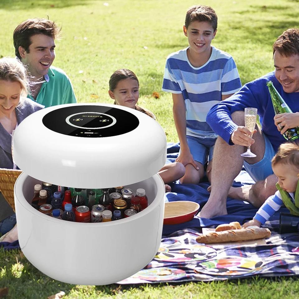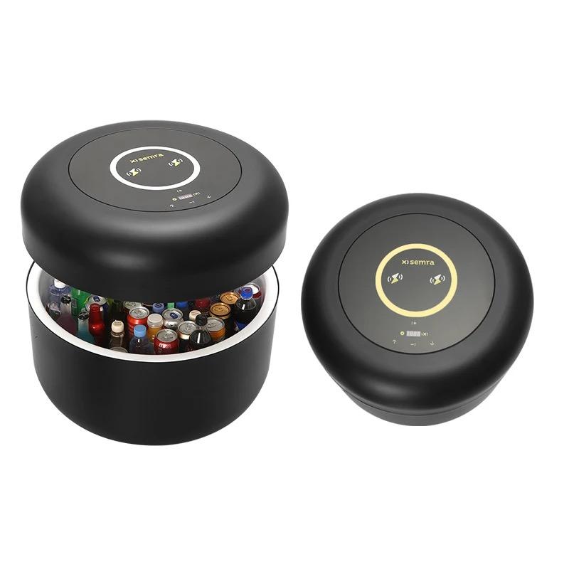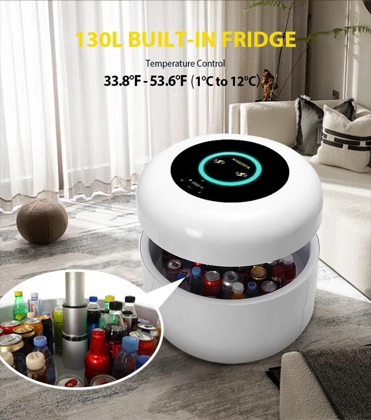 Table basse ronde intelligente de nouveau style avec chargement sans fil par haut-parleur Bluetooth et mini-réfrigérateur intégré