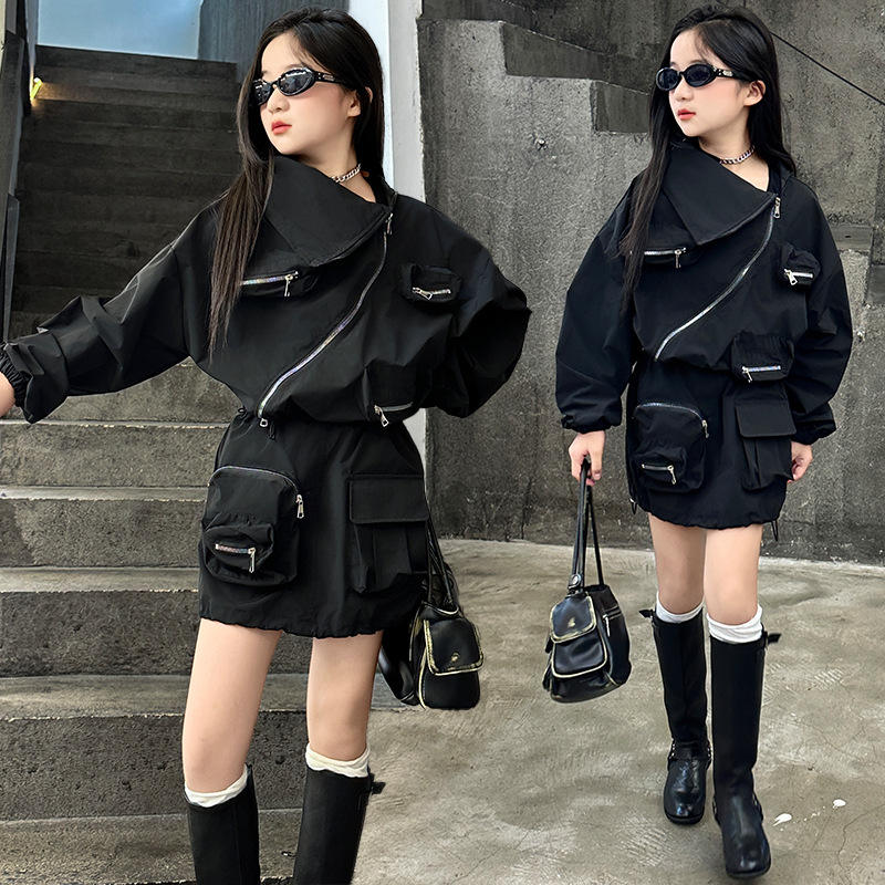 Ensemble de vêtements pour adolescentes de style nouveau, veste parka cargo à fermeture éclair à manches longues et jupe, tenue 2 pièces pour filles