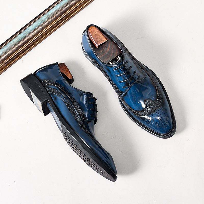 Nouvelle Collection : Chaussures Habillées Homme à Lacets, Bout Pointu, Motif Pois, Brillantes et Trousées, Style Automne