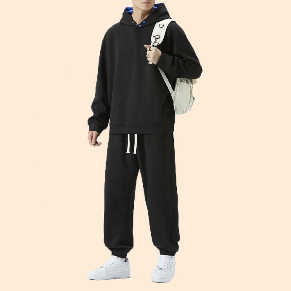 Nouvel ensemble de survêtements d'hiver unisexe personnalisé imprimé, coupe ajustée, grande taille, avec sweat à capuche, poids moyen