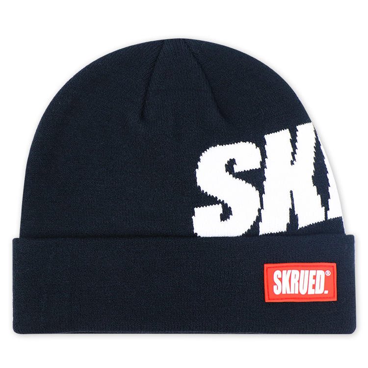 Nouveau Style unisexe Jacquard noir personnalisé tricot hiver 100% laine impression numérique réglable en caoutchouc Patch à revers bonnet chapeau