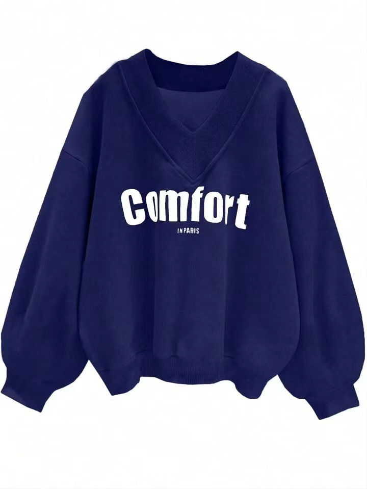 Nouveau Style unisexe à manches longues sweats col en v lettre sweats décontracté haut ample conception personnalisée