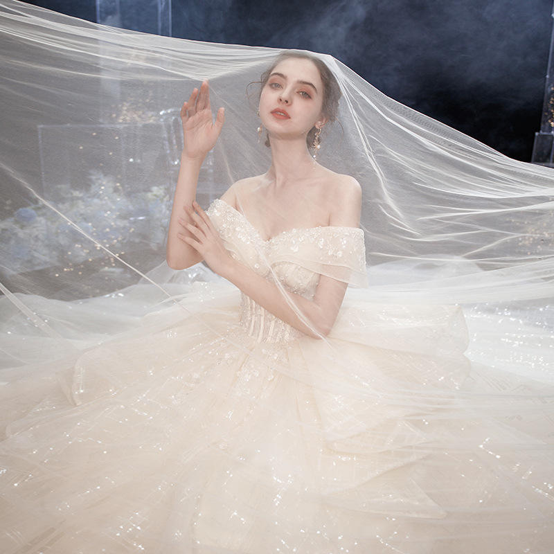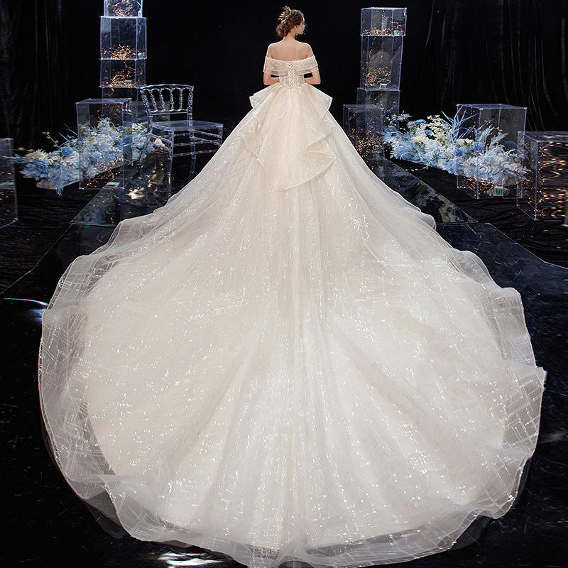 Nouveau Style blanc traînant robe de mariée pour la mariée hors épaule mince robe de mariée en gros