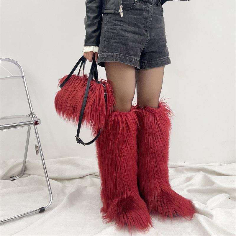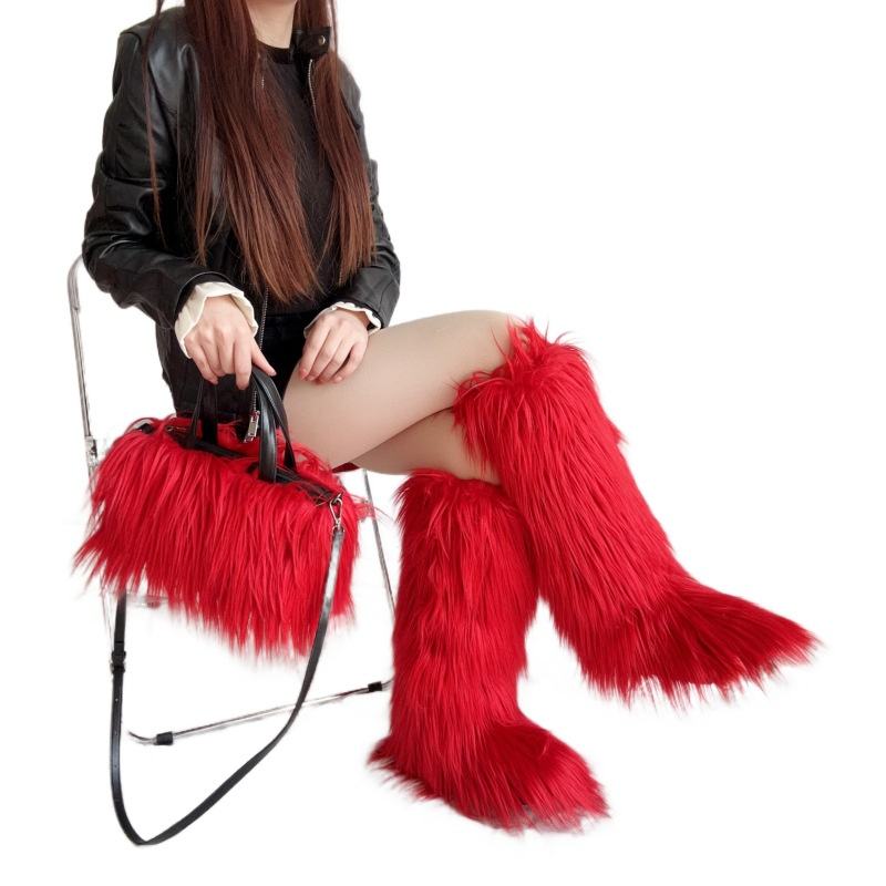 Nouveau Style bottes d'hiver genou-haute neige fourrure semelle intérieure sac à main peluche chute eau cheveux laine costume pour fille chaude