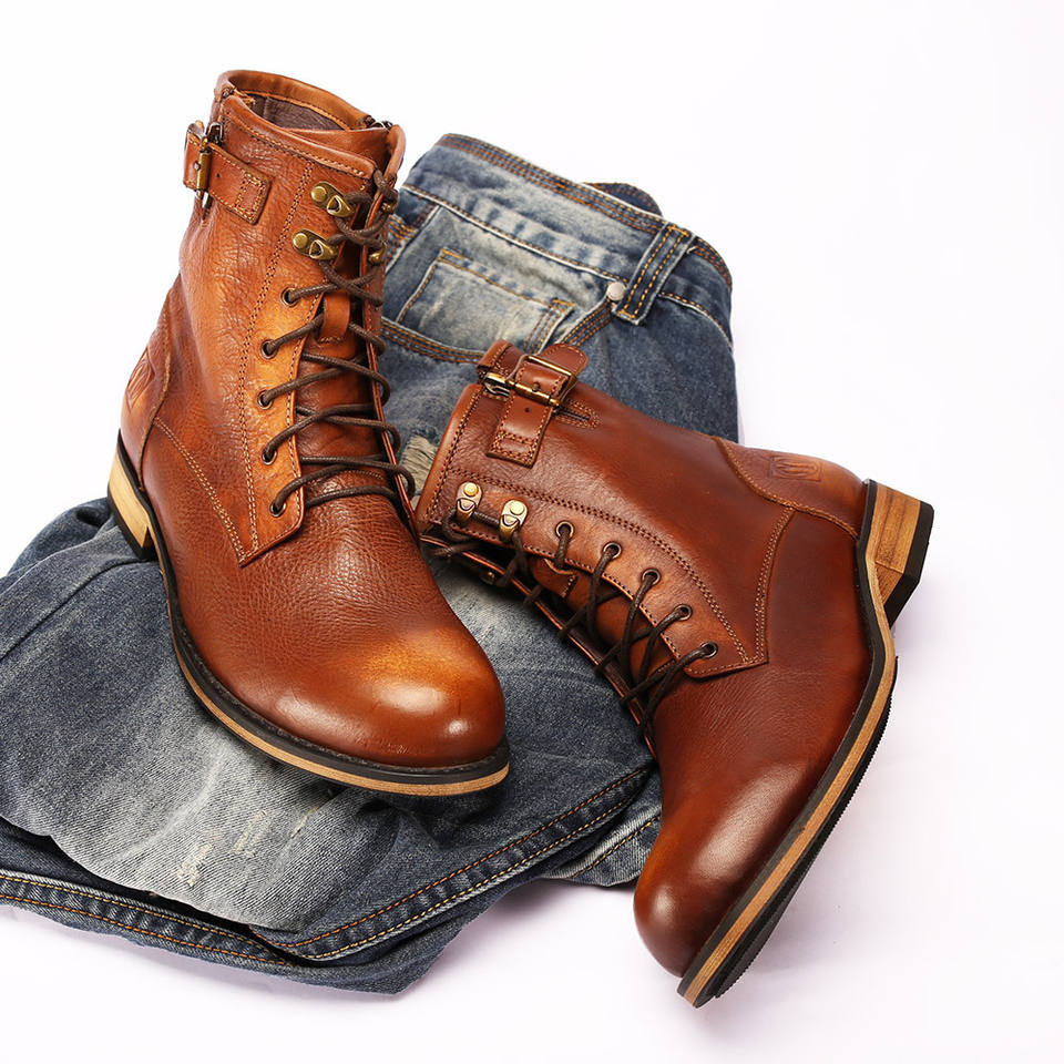 Nouvelles bottes pour hommes de style britannique rétro d'hiver à bout rond - en cuir véritable - bottes tendance et élégantes pour le travail