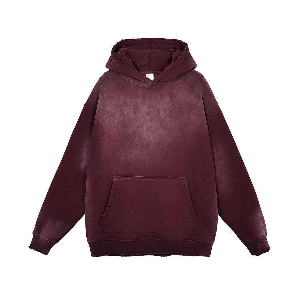 Sweat à capuche brodé en style hivernal, délavé à l'acide, pour hommes, meilleure qualité, mélange polyester/coton